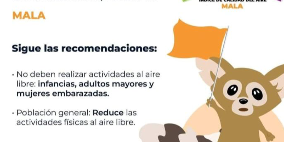 - Se recomienda que niños, adultos mayores y personas con padecimiento respiratorios y cardíacos, deben realizar evitar realizar actividades físicas al aire libre o en su defecto hacerlo de forma moderada.