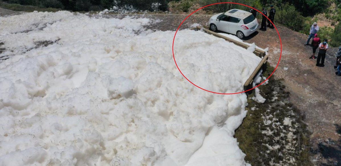De acuerdo con los reportes locales, el joven fue identificado como Juan Ignacio “N” de 32 años, quien al percatarse de la espuma tóxica decidió que su acompañante le tomara una fotografía.