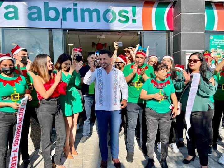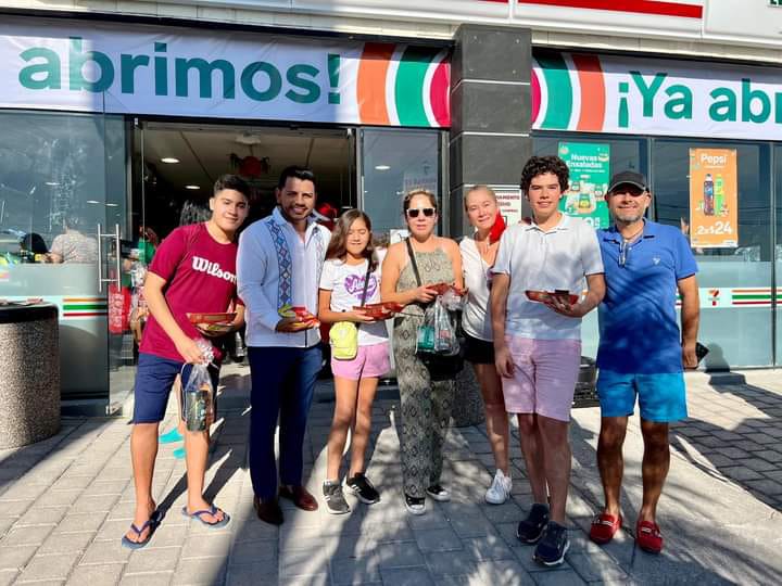 El alcalde de Xochitepec, Roberto Gonzalo "Chalo" Flores Zúñiga, acudió a la inauguración de la primera tienda Seven Eleven en el municipio, en Santa Fe, poblado de Alpuyeca.