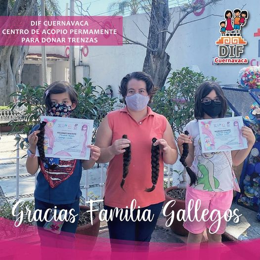 En las instalaciones del DIF de Cuernavaca, una madre acompañada de sus dos hijas realizaron la donación de tres trenzas para la fabricación de pelucas oncológicas.