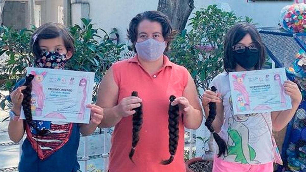 En las instalaciones del DIF de Cuernavaca, una madre acompañada de sus dos hijas realizaron la donación de tres trenzas para la fabricación de pelucas oncológicas.