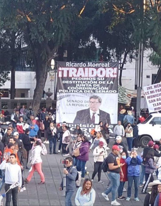 El ausente, por motivos de su agenda legislativa, fue el senador Ricardo Monreal, quien se encuentra en España participando junto a otros legisladores y legisladoras en una plenaria en el Congreso de ese país; pero hubo un grupo de simpatizantes de MORENA que llevaron una lona en la cual pedían que sea destituido de la Junta de Coordinación Política (JUCOPO) en el Senado de la República, por ser un "traidor".