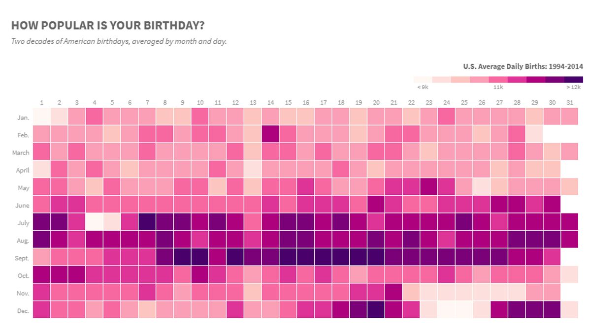 Si te interesa conocer qué tan común es tu fecha de cumpleaños alrededor del mundo, te dejamos esta gráfica hecha por el portal “The Daly Viz”.