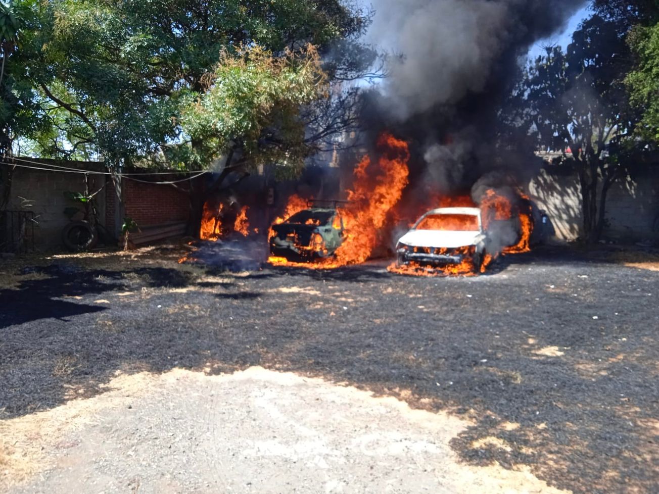 De acuerdo con la Policía, poco después de las 14:00 horas, se recibió una llamada de ayuda desde la calle Benito Juárez, en donde se reportó que había dos vehículos ardiendo en llamas.
