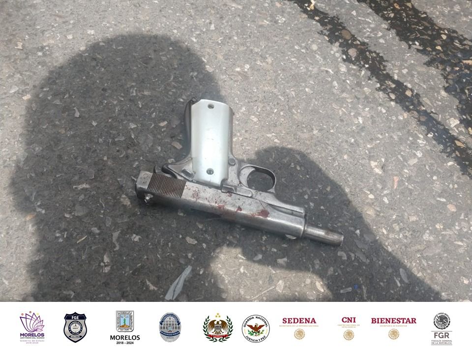 En el lugar fue localizada un arma de fuego calibre .380, misma que era portada por los occisos.