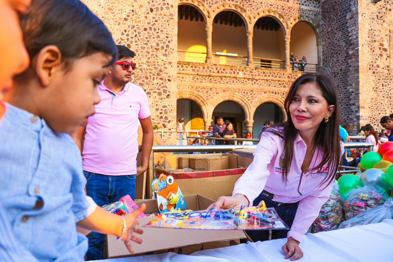 La explanada del Palacio de Cortés fue el punto de encuentro donde niñas y niños vivieron momentos de ilusión y alegría, al recibir de manera gratuita más de cuatro mil juguetes y rosca de reyes, entregados por la presidenta del DIF Cuernavaca, Luz María Zagal Guzmán, acompañada de su esposo, el alcalde José Luis Urióstegui Salgado. El festejo incluyó además brincolines, juegos de destreza y diversos stands lúdicos que convirtieron el espacio público en un entorno seguro de convivencia y encuentro comunitario.
