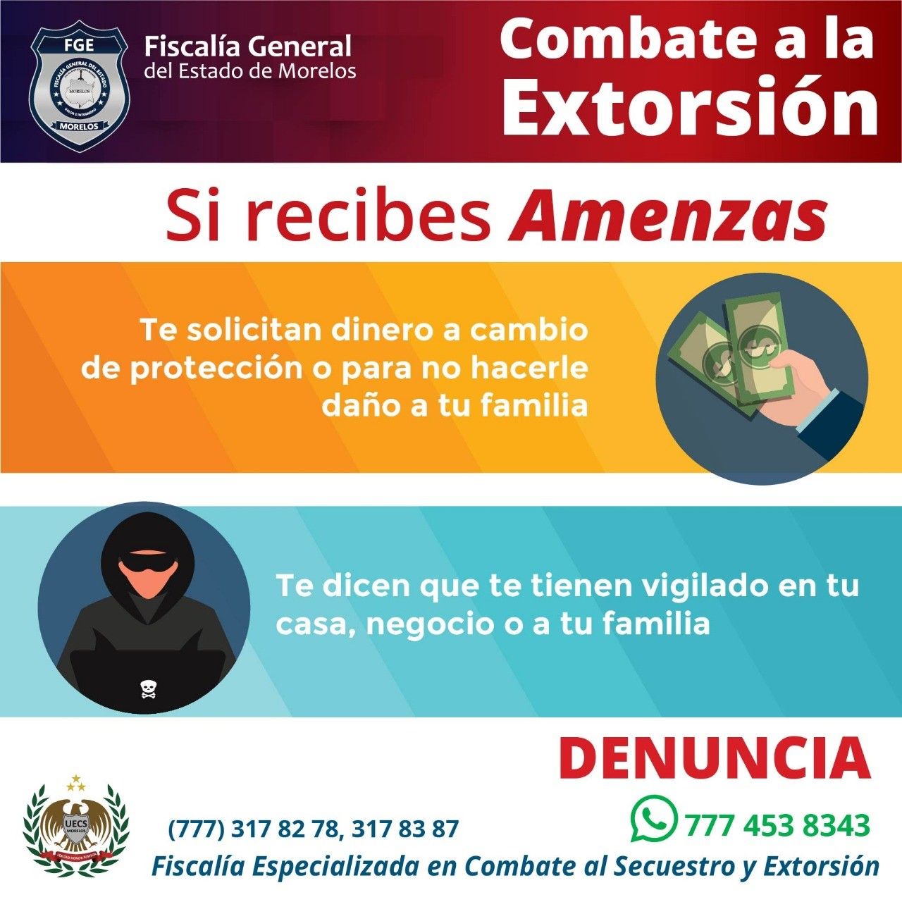 - Denuncia cualquier tipo de extorsión.