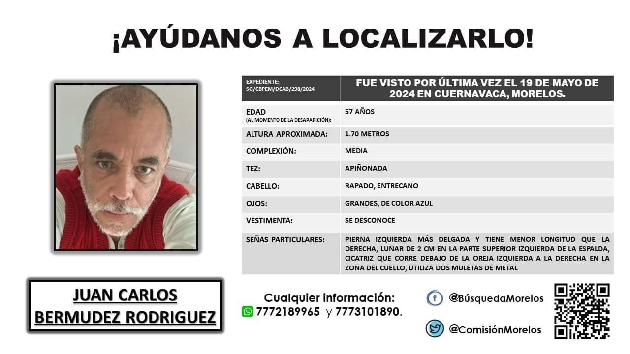 El domingo pasado 19 de mayo, a las 13:30 aproximadamente, el artista plástico, catedrático e investigador de la UAEM Morelos, Juan Carlos Bermúdez Martínez, sostuvo una última comunicación con sus familiares.