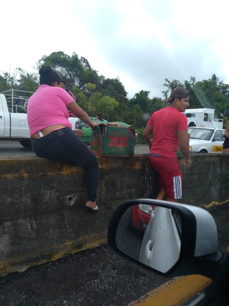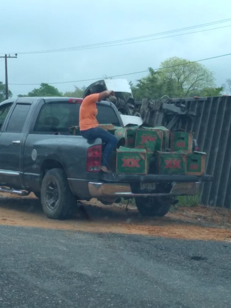 La mañana de este jueves un tráiler cargado con cervezas volcó sobre la carretera Villahermosa – Macuspana en Tabasco, provocando la rapiña de los vecinos de la zona que no esperar mucho para vaciar la caja del camión.