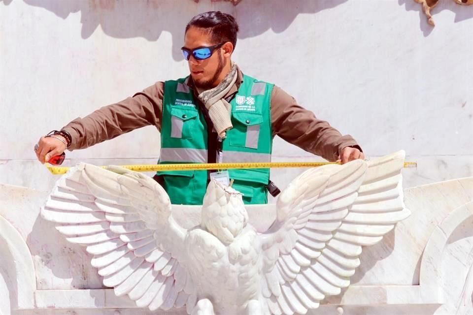 Por la tarde del domingo, personal del Instituto Nacional de Bellas Artes y Literatura (INBA), acudió al lugar para juntar las piezas y hacer un análisis para su reparación.