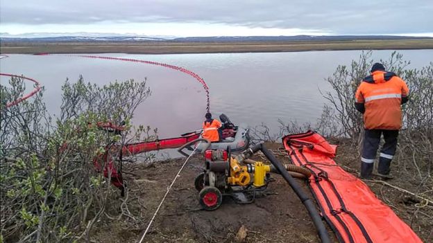 Tras la situación el presidente Ruso, Vladimir Putin, ha declarado estado de emergencia pues el combustible ya se ha trasladado 12 kilómetros del lugar del accidente, convirtiendo varios tramos del río en color rojo.