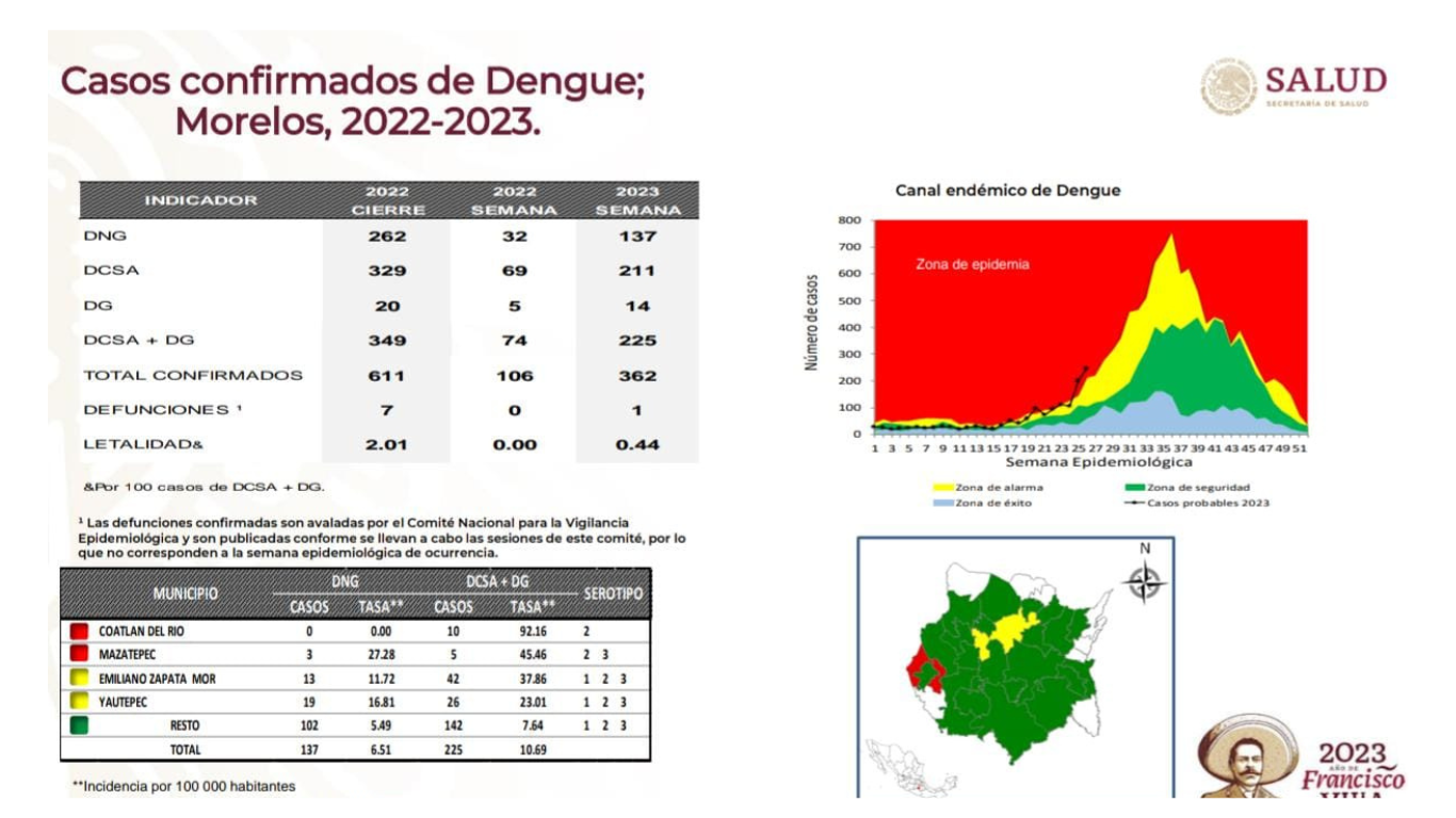 Los municipios con mayor incidencia se han identificado como Coatlán del Río, Mazatepec, Emiliano Zapata y Yautepec. Estos datos resaltan la necesidad de intensificar las acciones de control de vectores y de educación a la población para eliminar criaderos de mosquitos.