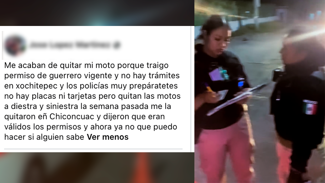 “Me acaban de quitar mi moto porque traigo permiso de Guerrero vigente y no hay trámites en Xochitepec. Los policías muy prepotentes quitan las motos a diestra y siniestra”, expresó a través de redes sociales.