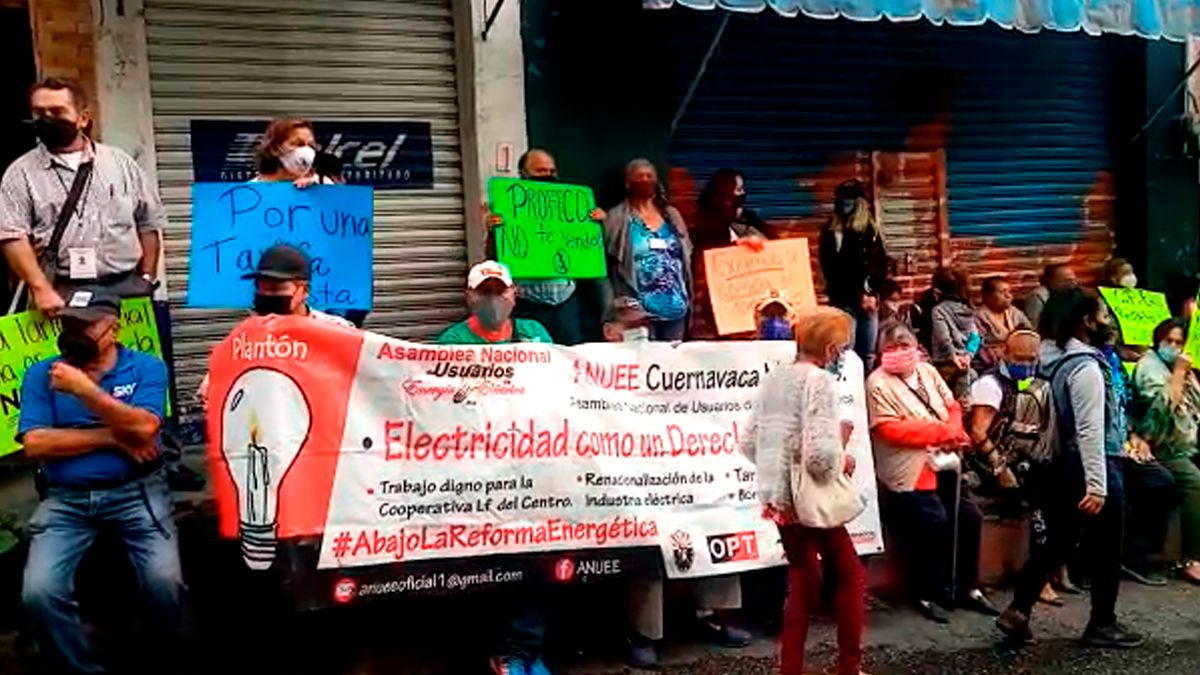 Integrantes de la Asamblea Nacional de Usuarios de la Energía Eléctrica (ANUEE), realizaron una protesta a las afueras de las oficinas de la Comisión Federal de Electricidad (CFE), ubicadas en calle Degollado del centro de Cuernavaca, esto para denunciar una serie de abusos que se han presentado por parte de dicha empresa.