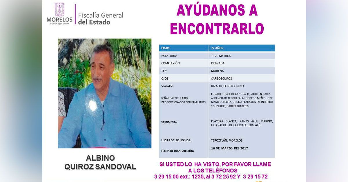 “La Familia Quiroz Peñaloza, hace un enérgico llamado a la Fiscalía General del Estado de Morelos para fortalecer la investigación que permita la localización del maestro Albino Quiroz Sandoval y la identificación de todos los cómplices de su desaparición”.