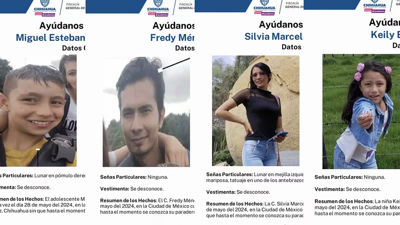 Según reportes de la familia, Silvia Marcela Martínez Parra y Fredy Méndez Remolina, ambos de 34 años, junto con los menores Miguel Esteban Ramírez Martínez, de 15 años, y Keily Beltrán Martínez, de 9 años, desaparecieron durante su traslado desde la capital mexicana hacia Ciudad Juárez.