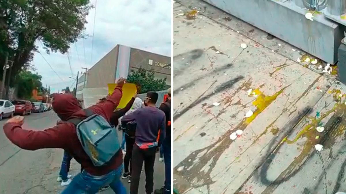 Las inconformes lanzaron huevos a la fachada del recinto legislativo mientras gritaban consignas como: