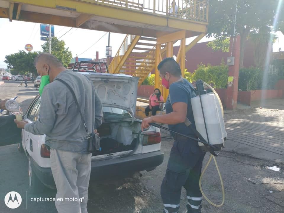 Con apoyo de Protección Civil, Bomberos y la Dirección de Tránsito municipal se trabaja para que las unidades de taxis sean un espacio seguro ante la propagación del coronavirus.
