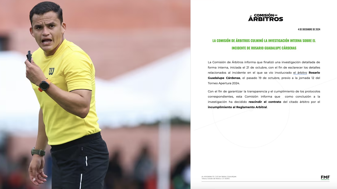 La Comisión de Árbitros de la Liga MX informó a través de un comunicado sobre el despido de Rosario Guadalupe Cárdenas, árbitro que no acudió al partido entre Rayados y Tigres durante la Jornada 12 del Apertura 2024.
