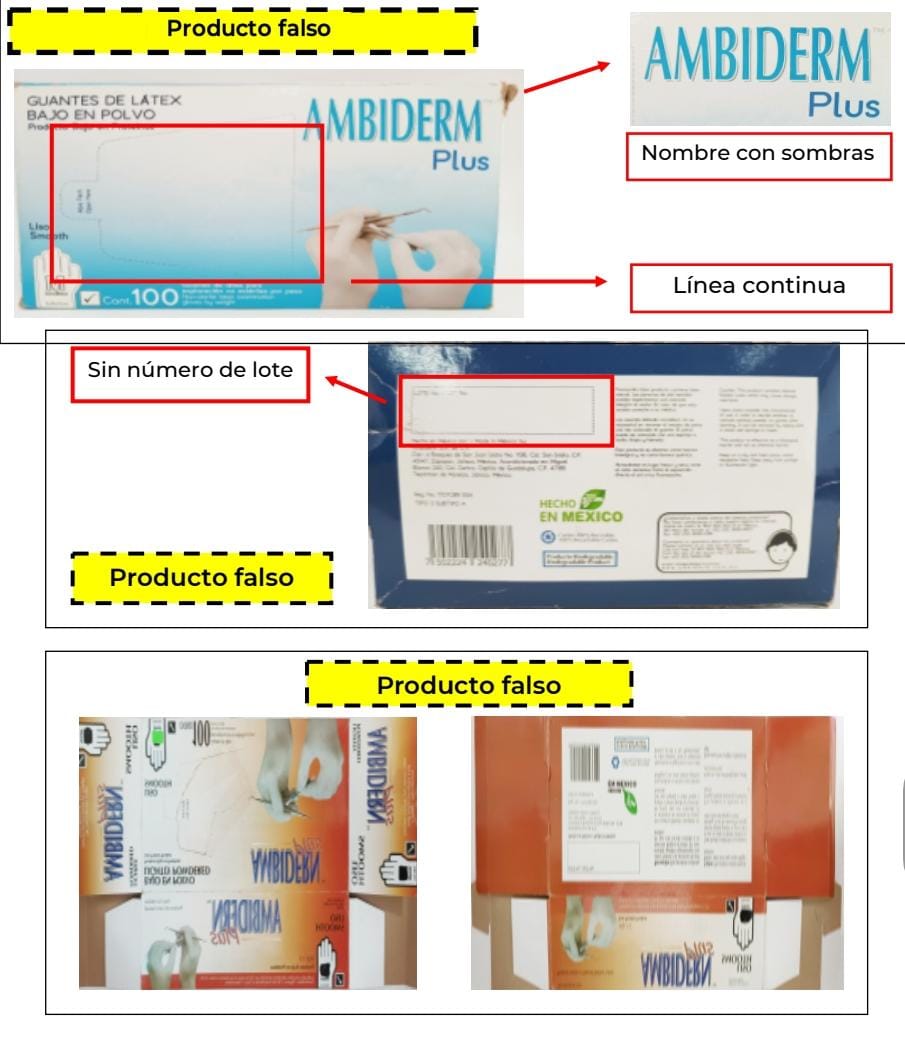 Por lo anterior, Cofepris hace la recomendación de revisar con detalle la presentación de las cajas de guantes de la marca Ambiderm antes de su adquisición y en caso de contar con los productos falsos, suspender su uso.