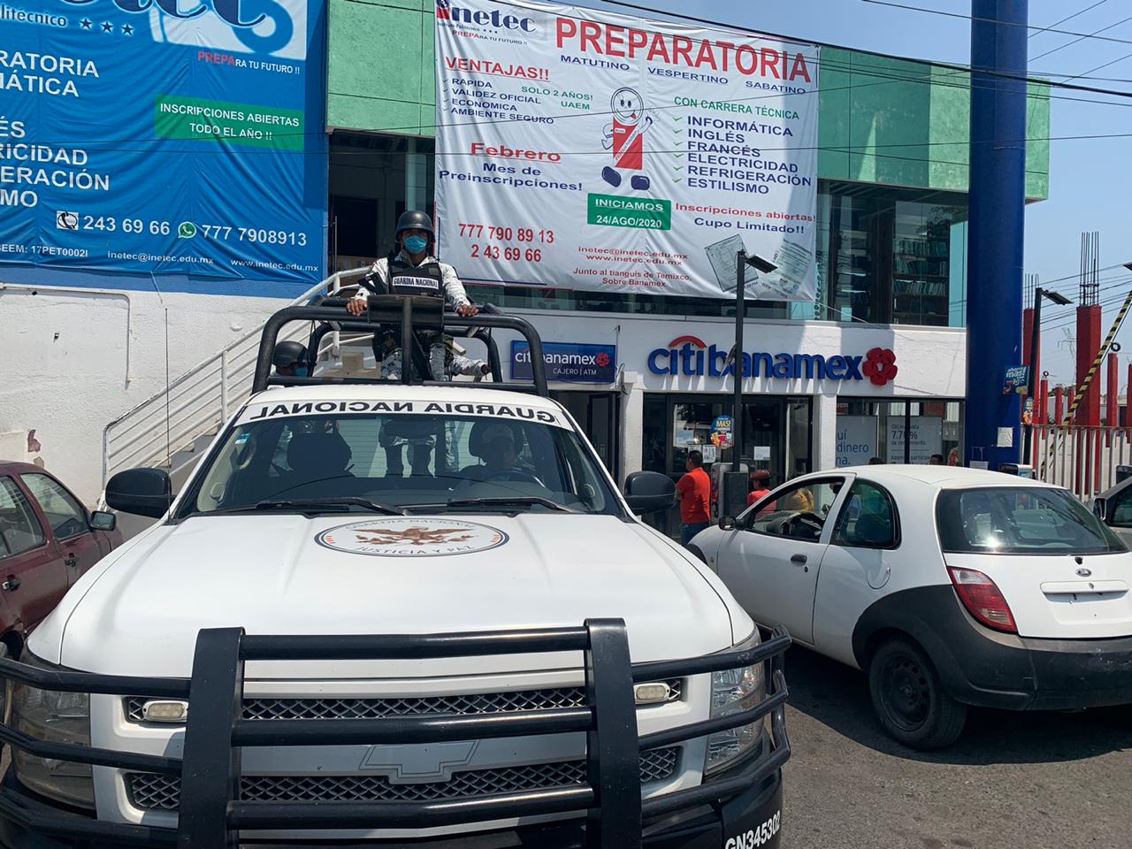 La Guardia Nacional en Morelos comenzó a realizar operativos de prevención y vigilancia en varias tiendas, supermercados y bancos del estado tras las advertencias de saqueos en diferentes municipios.