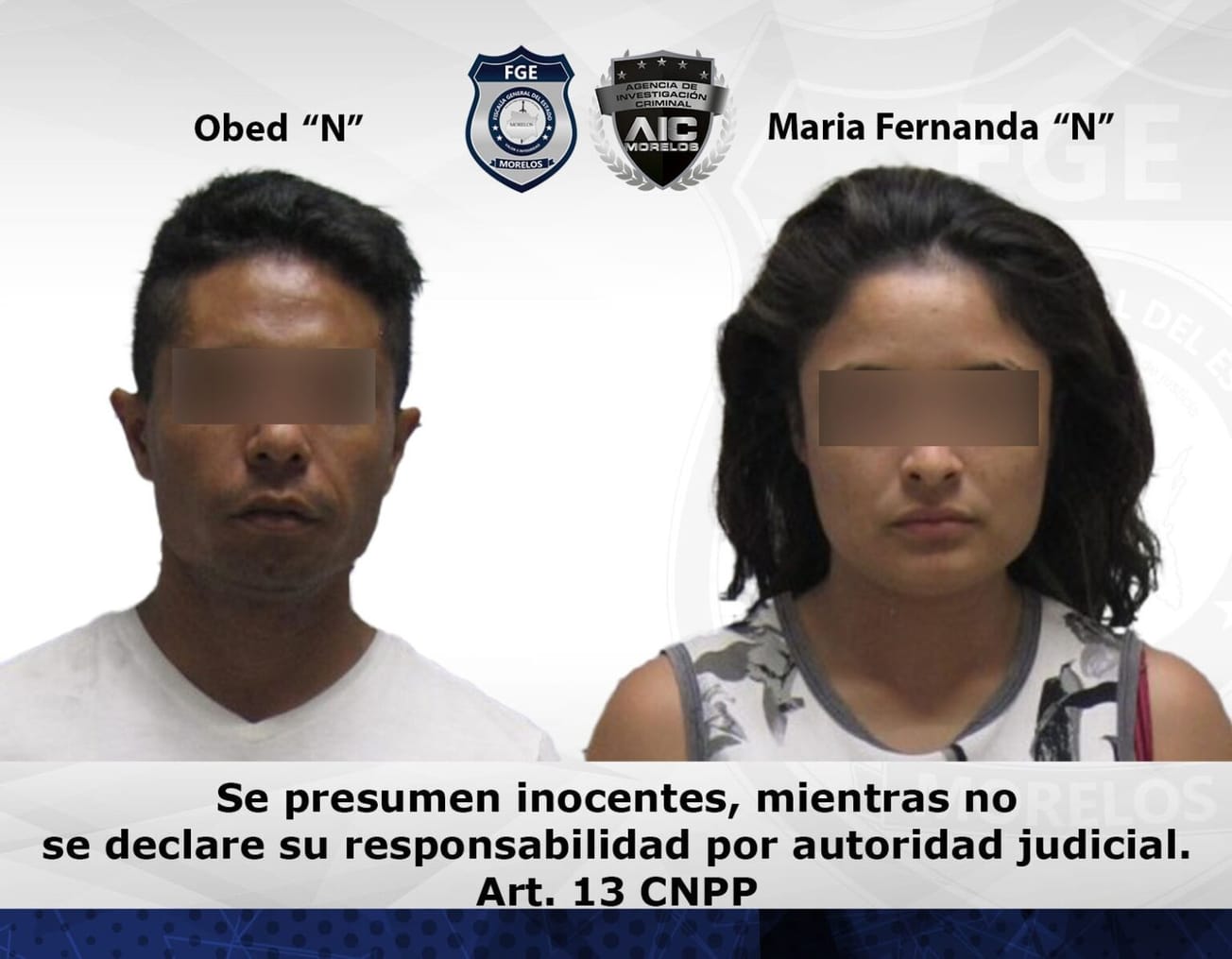 Elementos de la Fiscalía General del Estado de Morelos realizaron la detención de Obed "N" y María Fernanda "N", de 31 y 22 años de edad respectivamente; acusados por el delito de feminicidio en contra de una conductora de taxi por aplicación el pasado 22 de febrero en el municipio de Temixco.