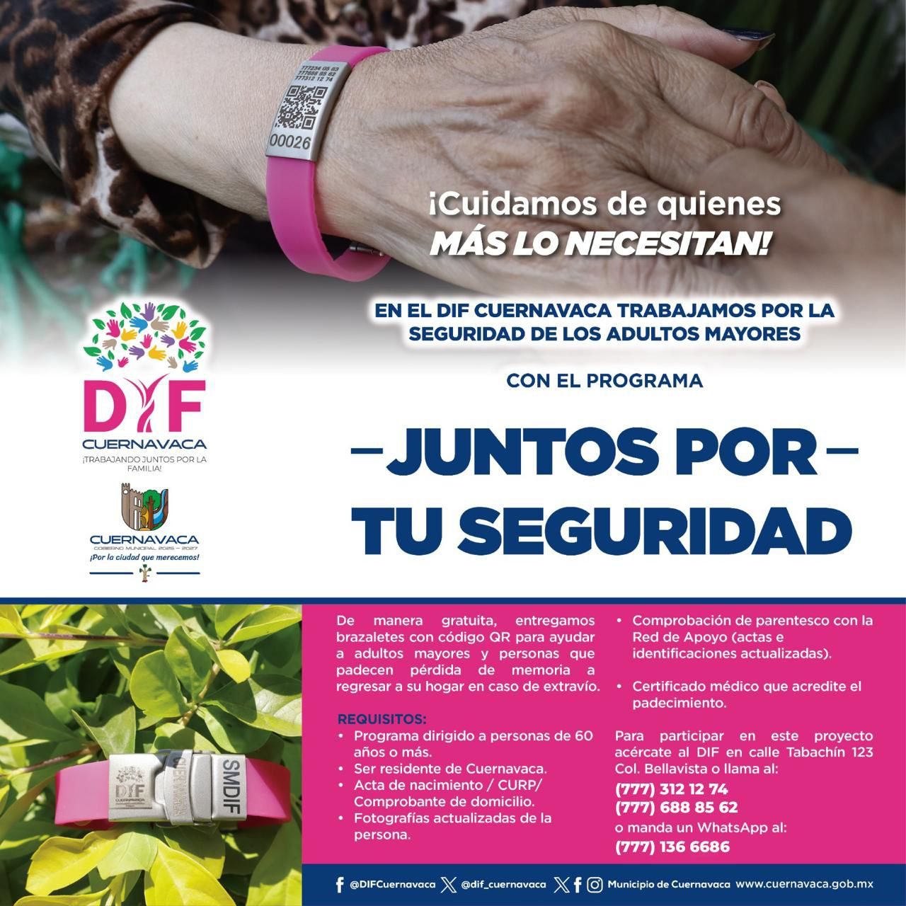 Con el compromiso de fortalecer las acciones en favor de los sectores más vulnerables, la presidenta del Sistema Municipal DIF Cuernavaca, Luz María Zagal Guzmán, acompañada del presidente municipal, José Luis Urióstegui Salgado, encabezó este viernes la presentación del programa “Juntos por tu Seguridad”, una innovadora iniciativa orientada a la protección de personas adultas mayores con enfermedades seniles o en situación de desorientación.