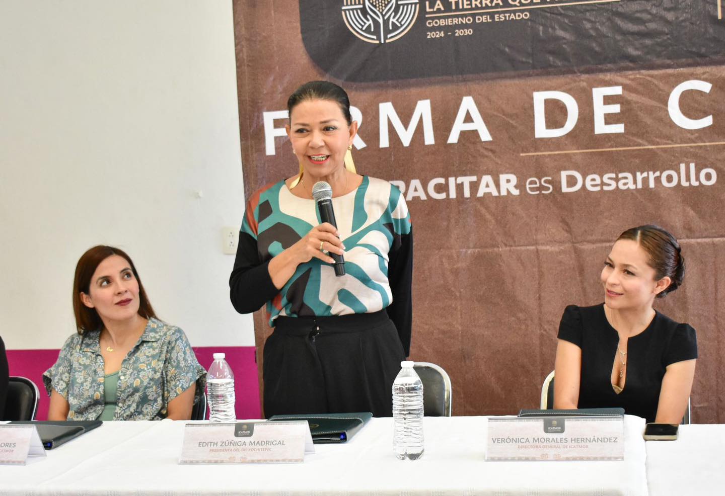 Por su parte, la Directora General del ICATMOR, Lic. Verónica Morales Hernández, expresó que el convenio no solo se enfoca en el desarrollo de habilidades, sino que también ofrecerá un acompañamiento continuo a los participantes, ayudándolos a transformar sus conocimientos en proyectos productivos.