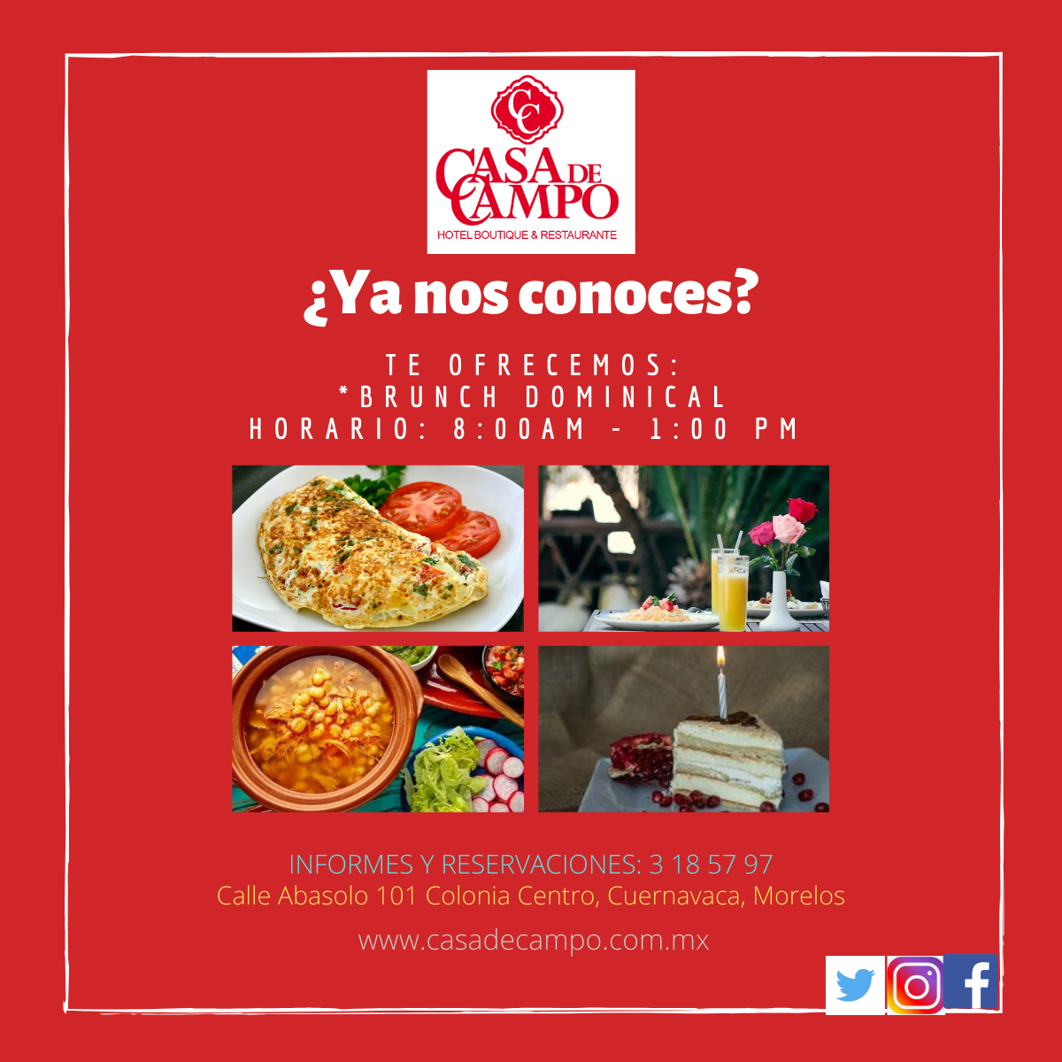 A partir de este domingo 9 de agosto, no te pierdas de un rico brunch dominical en uno de los lugares más hermosos del Centro de Cuernavaca, Casa de Campo.