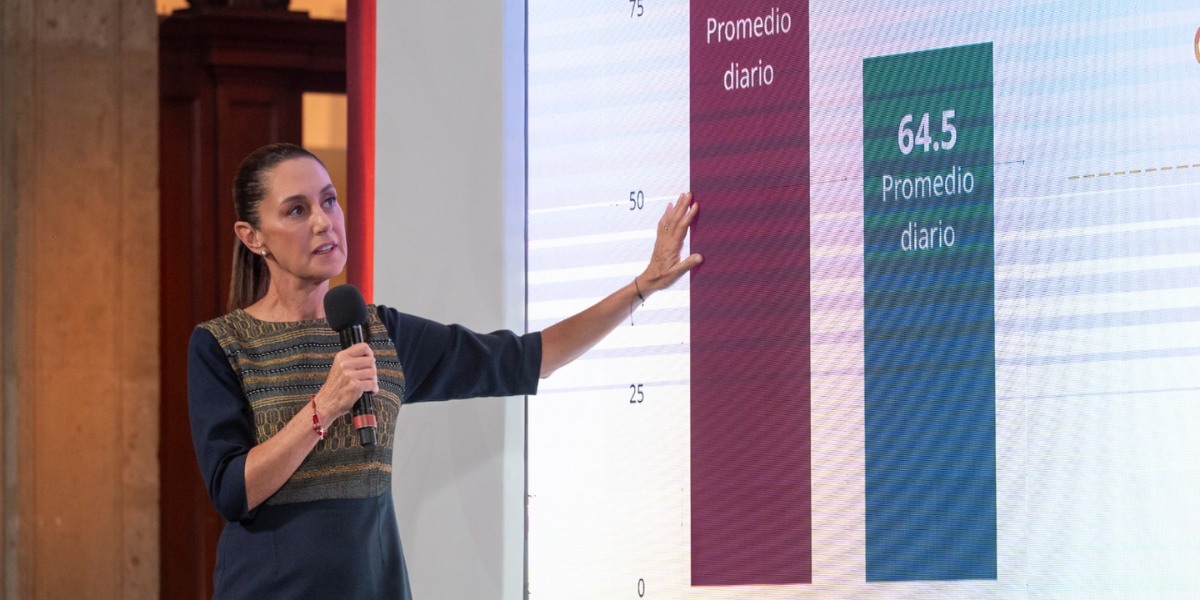 La secretaria ejecutiva del Sistema Nacional de Seguridad Pública, Marcela Figueroa Franco, explicó que el promedio mensual de septiembre de 2024 era de 86.9 homicidios diarios y en mayo de 2025 de 64.5, lo que representa una reducción en ocho meses de 25.8 por ciento. Además, de que mayo de 2025 es el mayo más bajo en cuanto a promedio de homicidios dolosos desde 2016, lo que evidencia la tendencia a la baja en dicho delito.