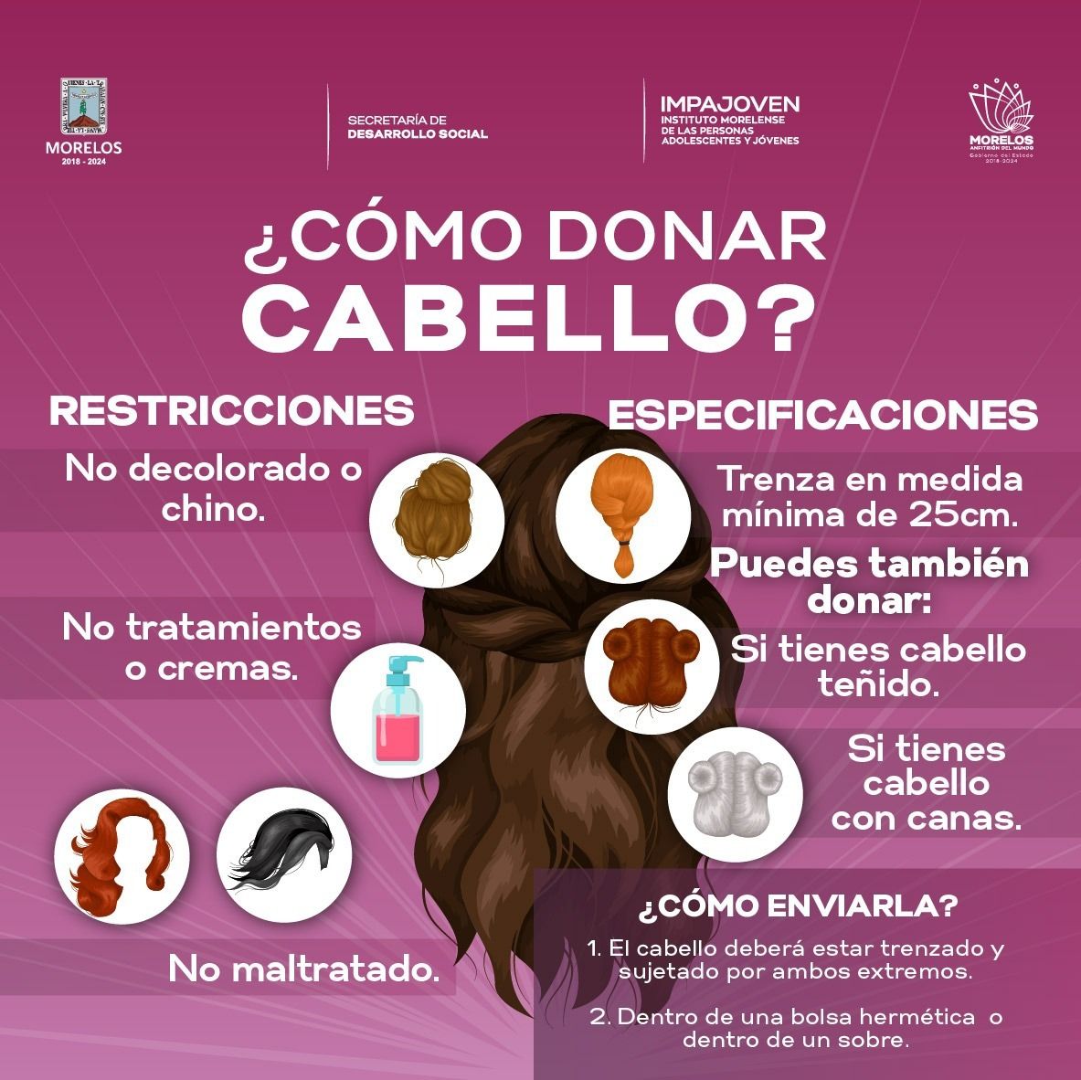 El Instituto Morelense de Personas Adolescentes y Jóvenes (Impepac), comenzó la campaña de donación de cabello denominada “Movimiento Rapunzel”, con la que se busca captar cabello para que sean convertidos en pelucas para niñas con cáncer que debido al tratamiento lo han perdido.