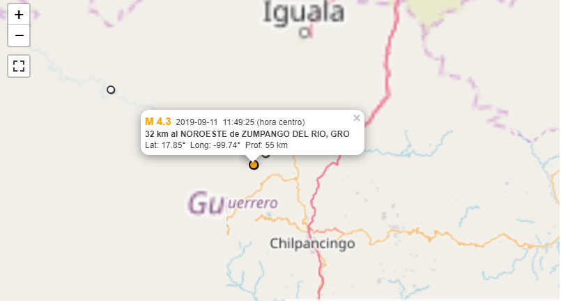 El primero se presentó a 32 km al noroeste del municipio de Zumpango del Río, y tuvo una magnitud de 4.3, con profundidad de 55 kilómetros.
