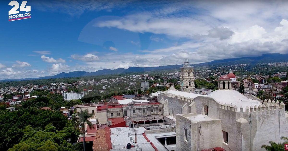 #Drone24Conoce desde las alturas la catedral de la capital morelense y sus calles colindantes.¿Ya la conoces?