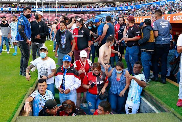 El partido continuó por un par de minutos más, sin embargo, a lo lejos se observaban en las gradas diferentes enfrentamientos entre las porras y de un momento a otro, los aficionados del equipo visitante invadieron el campo para ocultarse y resguardarse, pero de igual manera los queretanos bajaron y ahí continuaron las agresiones.