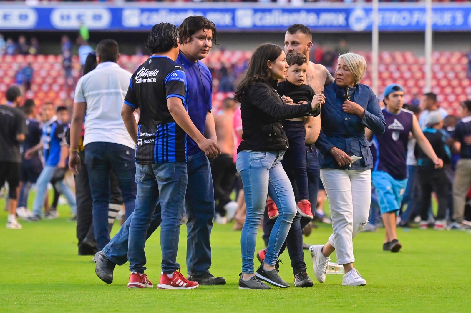 Mientras intentaban sacar con bien a la joven pareja jalisciense, se podía observar como había gente ensangrentada e inconsciente en los pasillos, hombres que continuaban siendo golpeados a pesar de que ya no reaccionaban y sin poder defenderse, la sangre se podía ver en todos lados dentro y fuera de las tribunas.