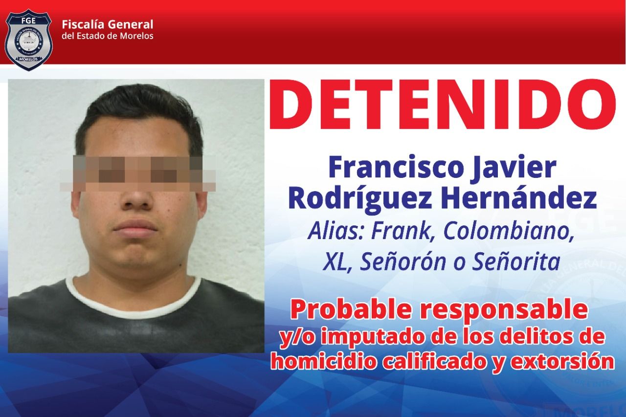 La tarde del pasado sábado 30 de abril, la Fiscalía General del Estado de Morelos celebró que con la construcción de mecanismos, integración de diversas carpetas de investigación, la integración del acervo probatorio, y especialmente, la coordinación para los trabajos de inteligencia y colaboración institucional, se logrará la aprehensión de Francisco Javier Rodríguez Hernández, conocido como el “Frank”, “Colombiano”, “XL”, y/o “Señorón”, en el municipio de Mazatlán en el estado de Sinaloa, a cargo de efectivos de la Secretaría de Marina Armada de México.