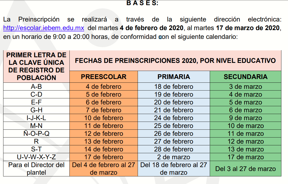 Desde el pasado 1 de enero, autoridades del Instituto de la Educación Básica del Estado de Moreslo (IEBEM), emitieron la convocatoria de preinscripciones para nivel básico, el cual, por décimo año se llevará a cabo a través de internet.