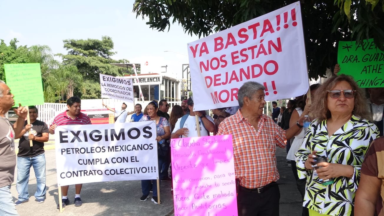 El grupo de inconformes exigió acceso a los servicios de salud y la remoción del Coordinador Médico Sectorial, Mauricio Guízar, a quien responsabilizan de la falta de atención médica adecuada.