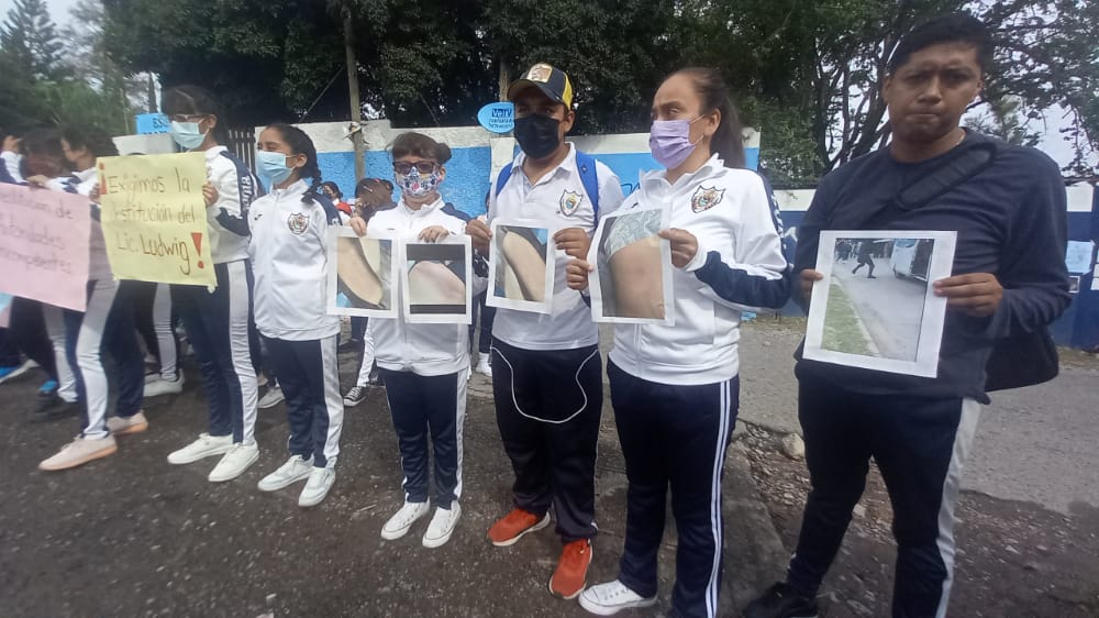 En las gráficas que mostraron, se aprecian alumnos con golpes en el rostro, piernas y brazos, por lo que denunciaron la falta de protocolos por parte de la Policía del Estado.