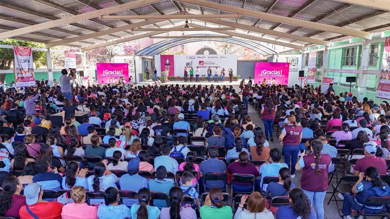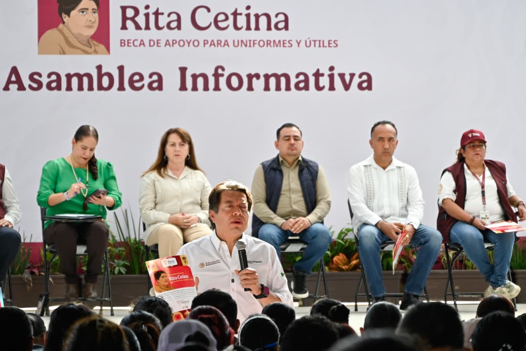 La gobernadora Margarita González Saravia y el secretario de Educación Pública, Mario Delgado Carrillo, encabezaron la Asamblea Informativa de la Beca Universal “Rita Cetina”, un programa federal que busca apoyar directamente a las familias con hijas e hijos en primaria.