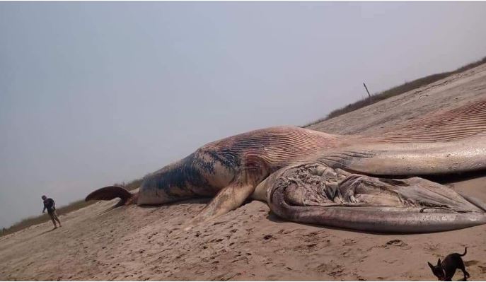 Personas que transitaban por la Bahía de Chacahua, sobre las costas de San Pedro Tutepec, en Oaxaca, encontraron muerta una ballena azul de poco más de 21 metros de largo y con un peso estimado de 100 toneladas.