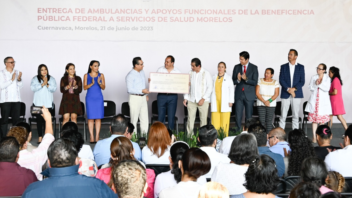 Durante la ceremonia, el gobernador Cuauhtémoc Blanco entregó un reconocimiento a la Administración del Patrimonio de la Beneficencia Pública y se formalizó la recepción de las ambulancias. También se hizo entrega simbólica de las llaves de once ambulancias a los directores de los hospitales. Además de las ambulancias, se otorgaron 640 apoyos funcionales.