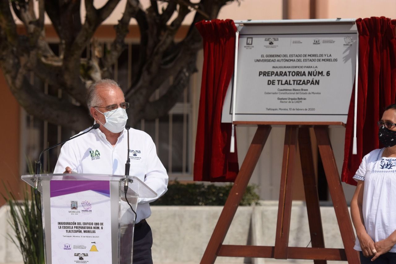 El gobernador Cuauhtémoc Blanco Bravo inauguró el edificio de la Preparatoria Seis de la Universidad Autónoma del Estado de Morelos (UAEM) en Tlaltizapán, una de las más completas y equipadas en la localidad.