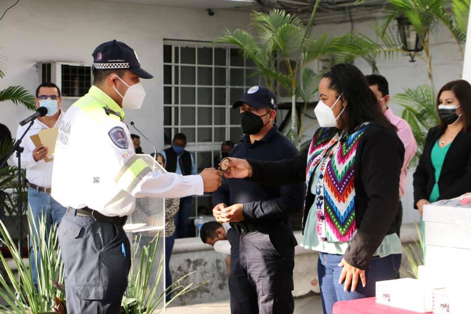 El Ayuntamiento de Temixco, encabezado por Jazmín Solano, realizó la entrega de 2 patrullas a la Policía de Tránsito municipal, así como de 13 terminales portátiles digitales con GPS integrado, un equipo de radio tetrapol tph 900, así como de 6 terminales digitales móviles, mismas que servirán para mejorar la comunicación entre agentes de seguridad y propiciar una seguridad.