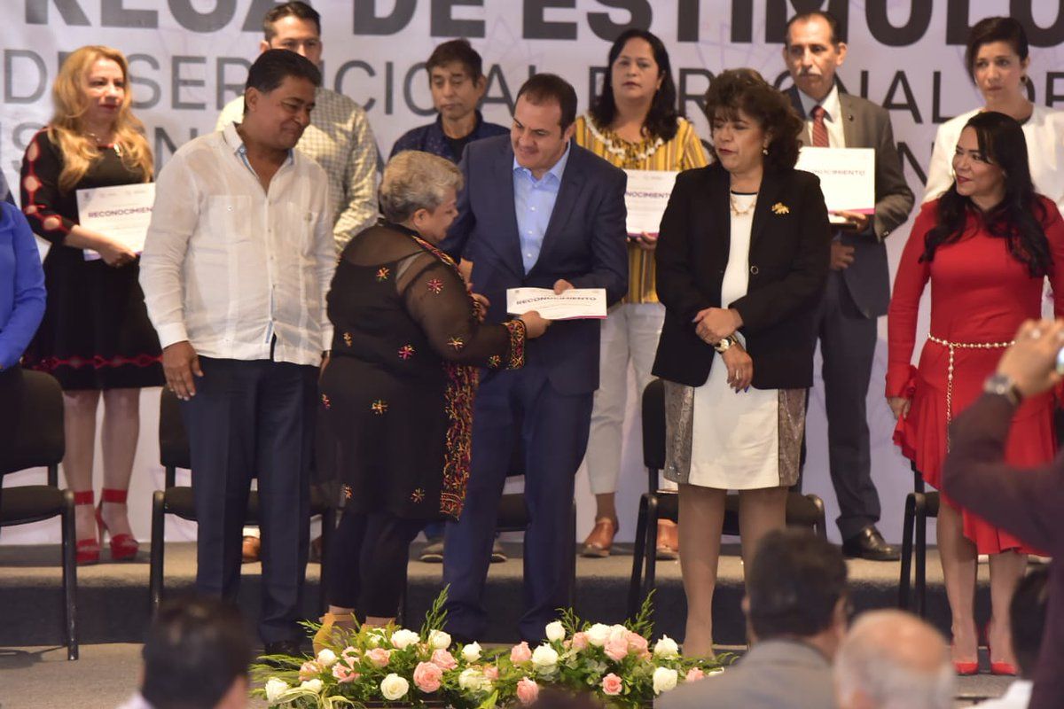 “Ustedes son hombres y mujeres que han entregado parte importante de su vida laboral a la educación en Morelos, aplaudo su vocación de servicio en un tema de tanta importancia en nuestra sociedad y los invito a continuar con su buen desempeño”.Mencionó en su discurso Cuauhtémoc Blanco.