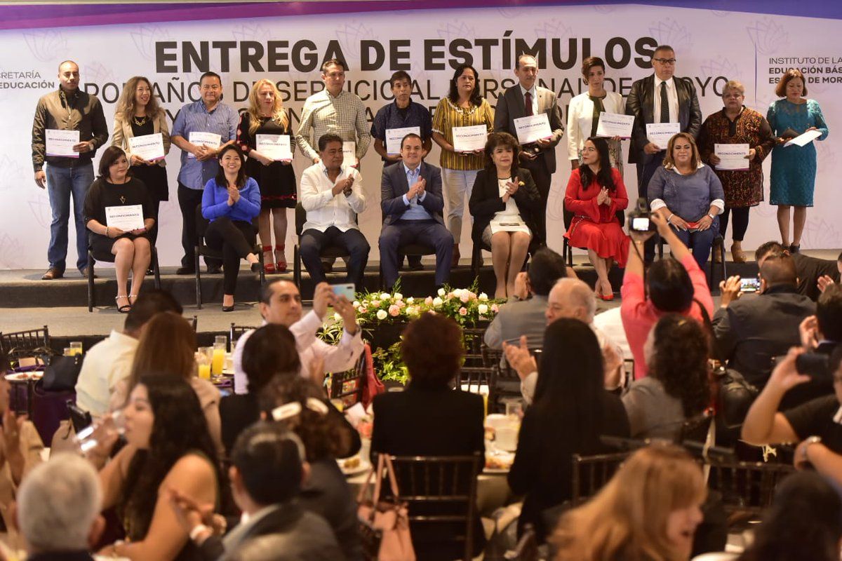 La mañana de este viernes, el gobernador de Morelos, Cuauhtémoc Blanco Bravo, entregó reconocimientos y estímulos a Personal de Apoyo y Asistencia a la Educación 2019 por sus años de servicio