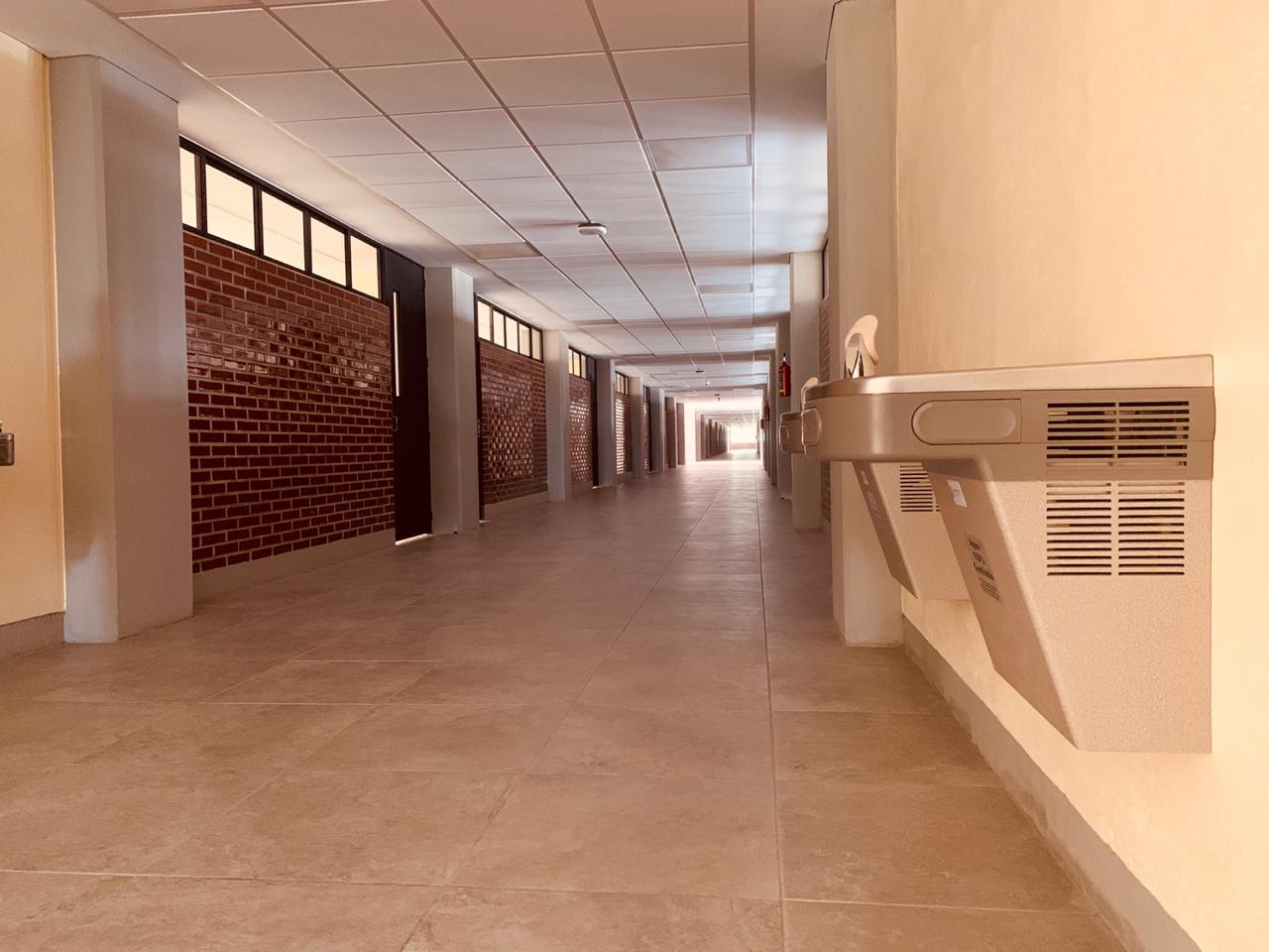 El nuevo edificio, que fue concluido luego de realizar los ajustes administrativos correspondientes, es de 145 metros de largo y 22 de ancho, e incluye planta de tratamiento de agua, planta eléctrica de emergencia, andadores, postes de luz alimentados con paneles solares, que beneficiarán a tres mil alumnos.
