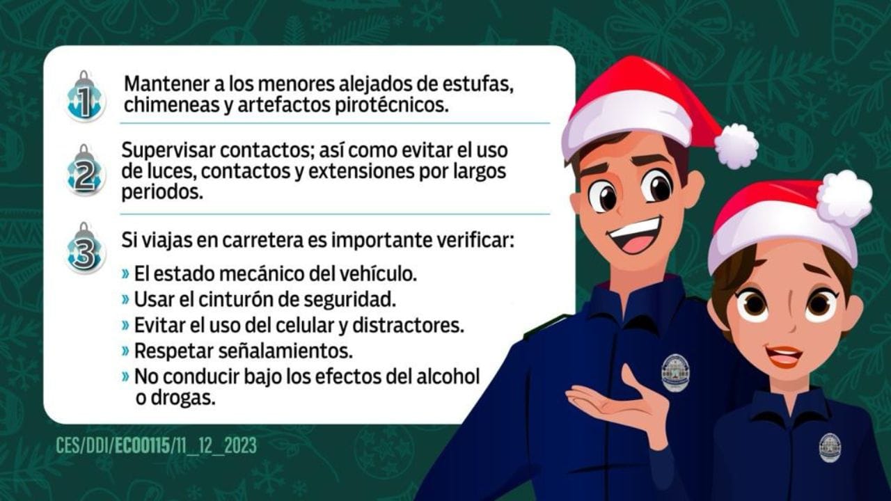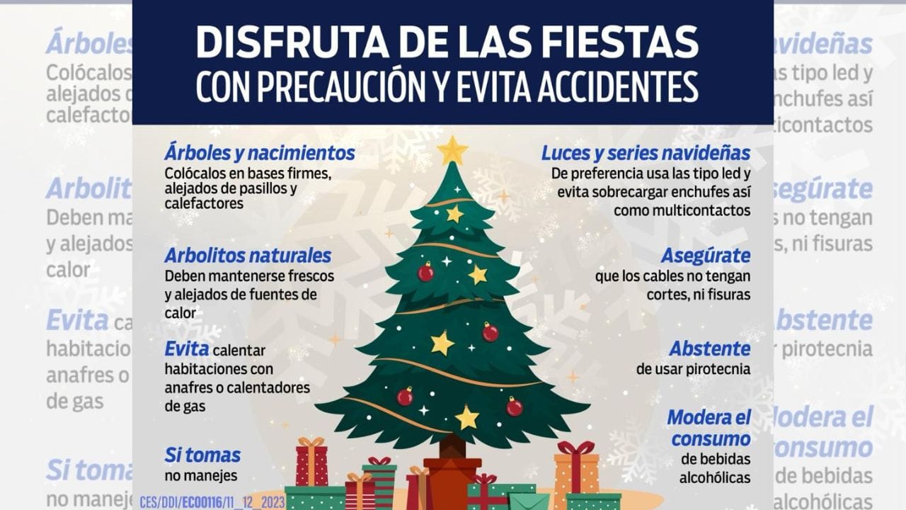 Se aconseja apagar las luces navideñas antes de dormir o al salir de casa, distribuir las conexiones eléctricas en distintos enchufes y alejar el árbol navideño de fuentes de calor para prevenir incendios.