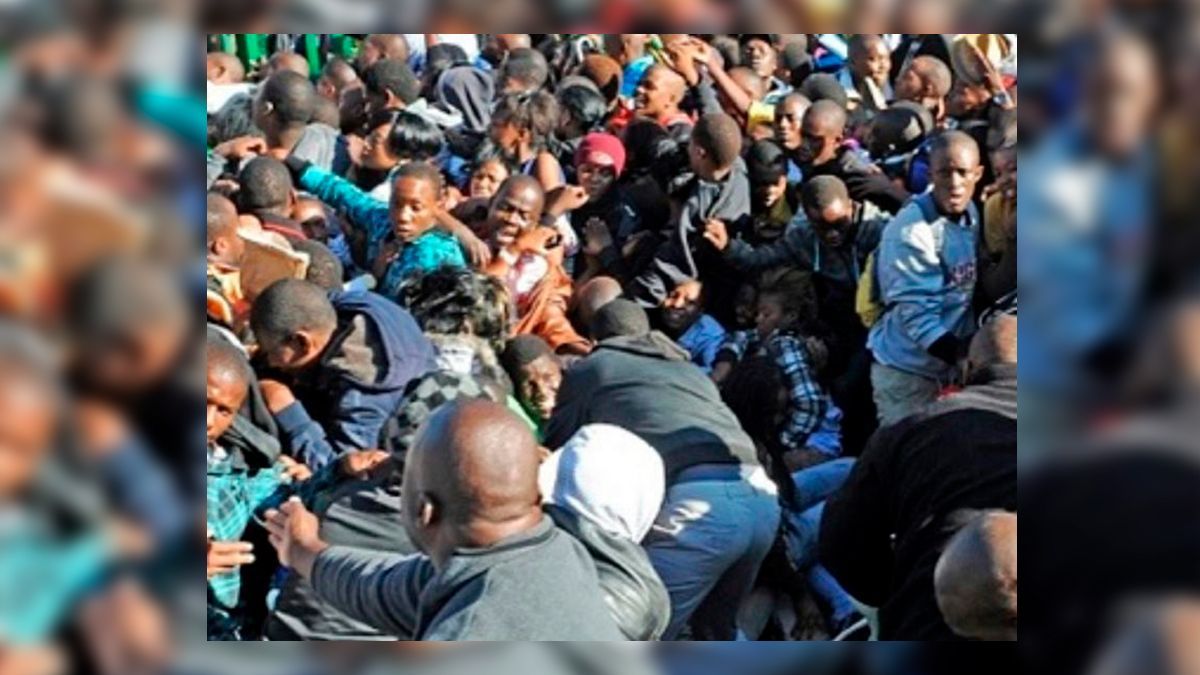 La iglesia, conocida como Kings Assembly, convocó un evento en el que prometió dar artículos de regalo y comida a cientos de feligreses que acudieron esa mañana y rompieron una puerta, lo que provocó la estampida.