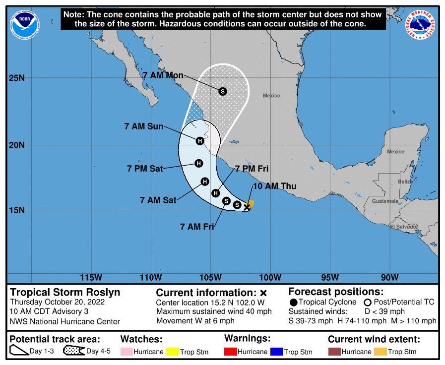 El día de hoy, la tormenta tropical "Roslyn" se ha intensificado por lo que podría convertirse en huracán.